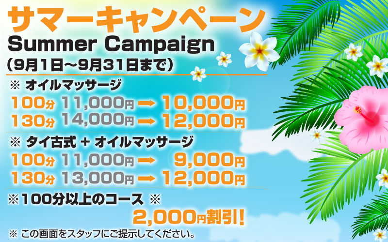 サマーキャンペーン バイポー タイ古式マッサージ 横浜 伊勢佐木長者町